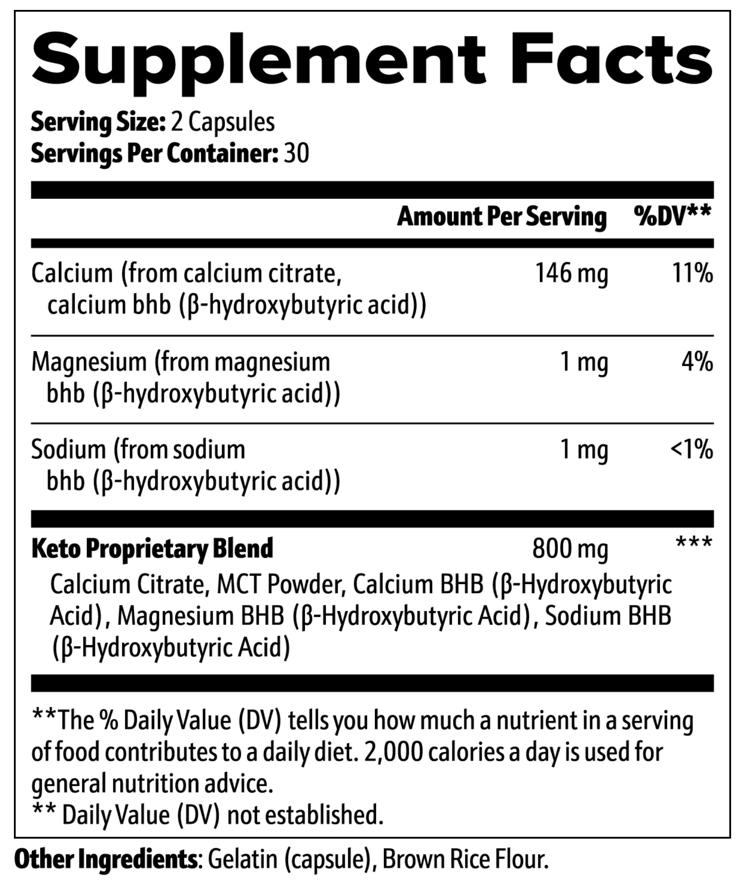 Ingredients: Calcium Citrate, MCT Powder, Calcium BHB (β-Hydroxybutyric Acid), Magnesium BHB (β-Hydroxybutyric Acid), Sodium BHB (β-Hydroxybutyric Acid)